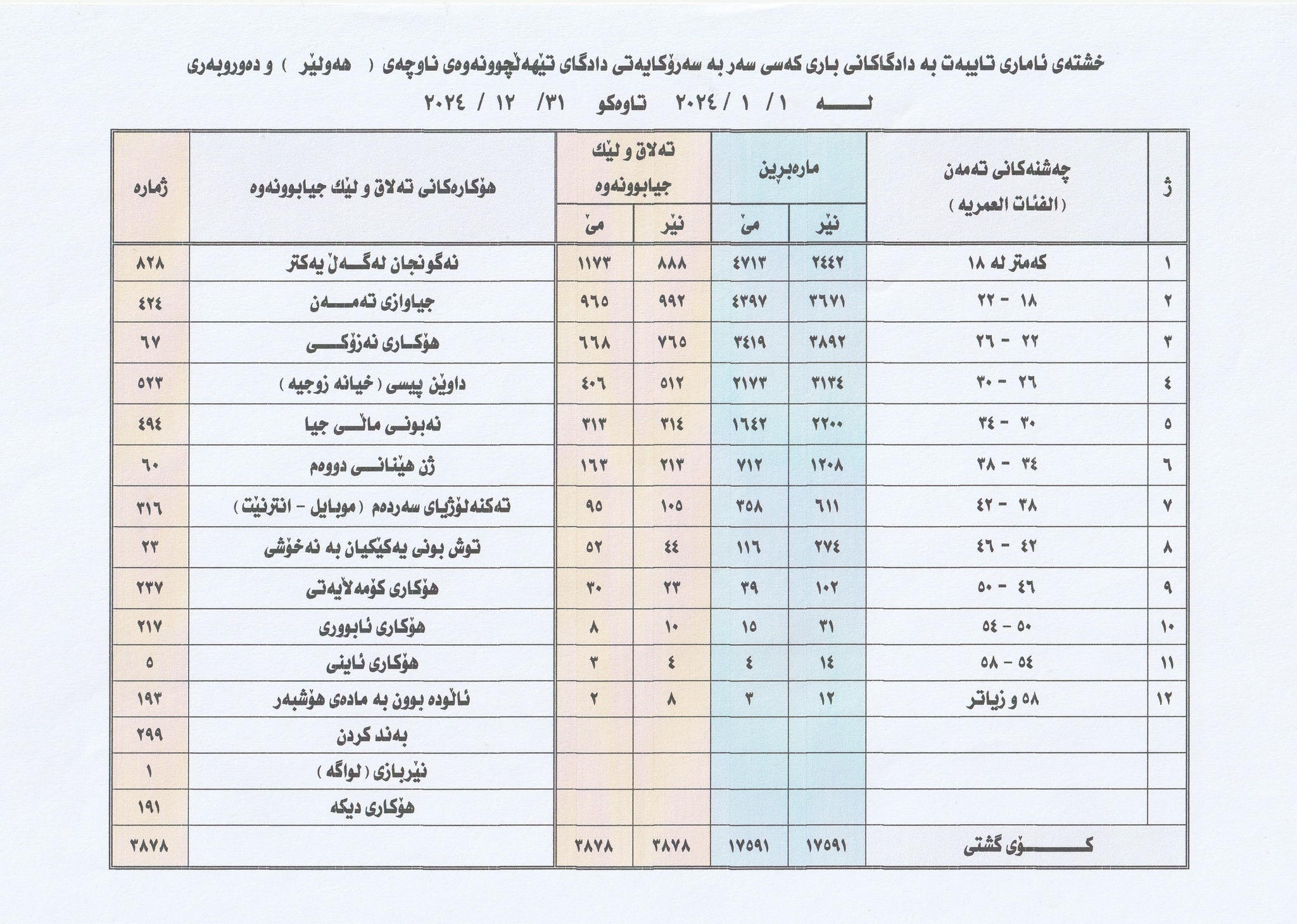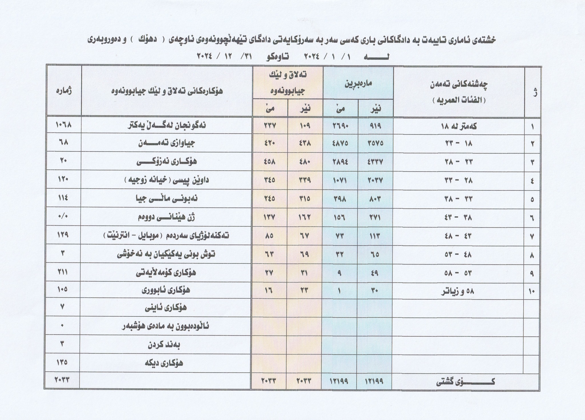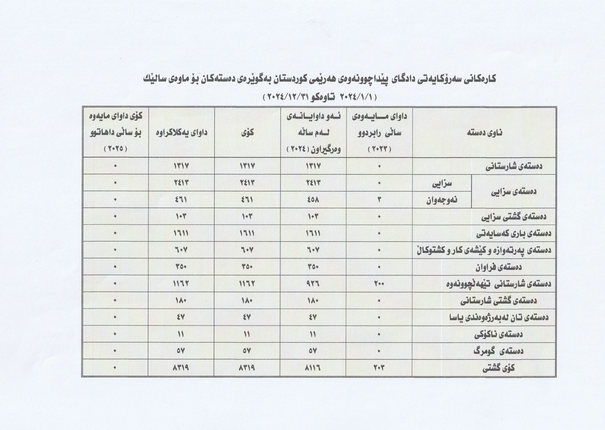 بەپێی ئامارەکانی ئەنجوومەنی دادوەری هەرێمی کوردستان بۆ ساڵی 2024 لە شارەکانی هەولێر، سلێمانی، دهۆک و گەرمیان بەم شێوەیەیە کە لە هەولێر زیادی کردووە و لە سلێمانی کەمی کردووە؛