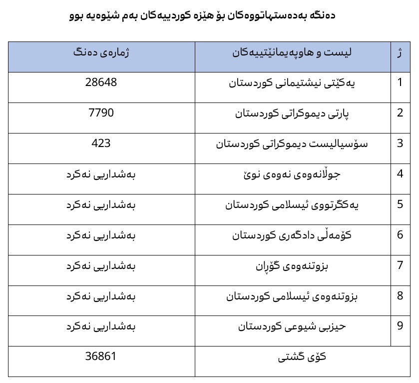 - حیزبى سۆسیالیست دیموکراتى کوردستان بە لیستى جیا بەشداریی کرد