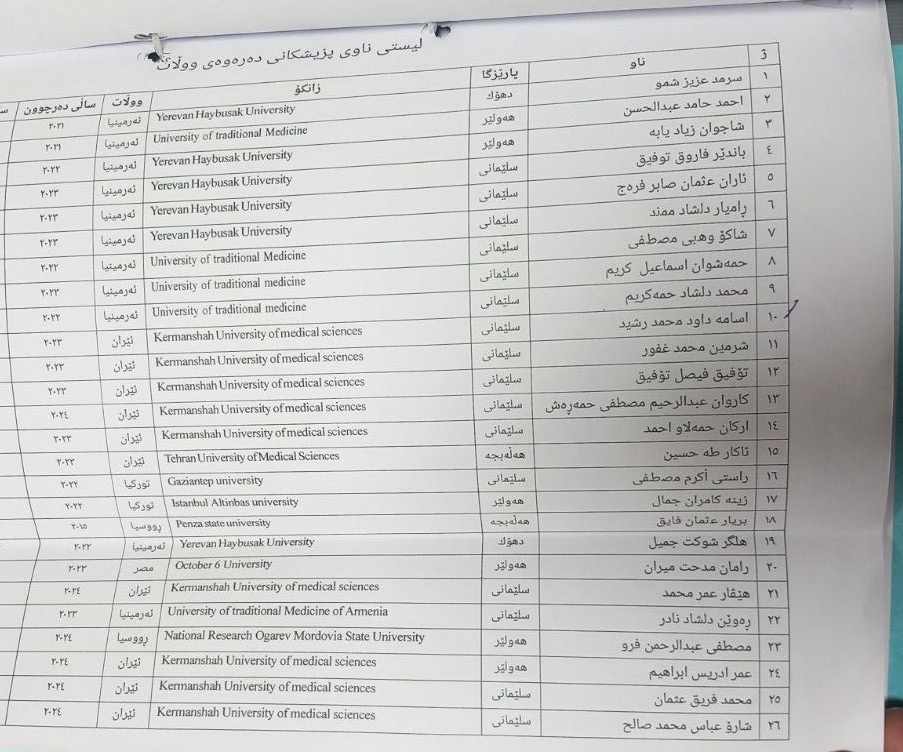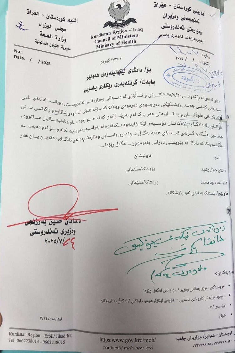 ئەمڕۆ یەکشەممە (21ـی کانوونی یەکەمی 2025) تۆڕی هاوپەیمانی 19 راگەیەندراوێکی بڵاوکردەوە و تیایدا نیگەرانی خۆی نیشاندا لە داوایەکی یاسایی وەزیری تەندروستی حكومەتی هەرێمی كوردستان دژ بە 54 پزیشكی دەرچووی دەرەوە وڵات.